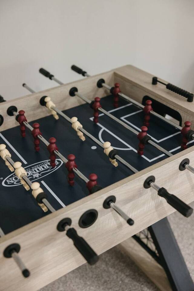 Come stay at your modern home away from home, minutes from Adventureland, Outlets of Des Moines, Prairie Meadows, and Downtown Des Moines. Enjoy a 6-person hot tub, game room with foosball and arcade games, fireplace, 4 Smart TVs, Fast Wi-Fi, and a stocked kitchen. Perfect for families, groups, or work trips. Sleeps 10 guests - 8 in 4 bedrooms plus 2 on a queen air mattress. Keyless entry, backyard with raised deck, fire table, and string lights. Located in a safe, quiet, and clean neighborhood.