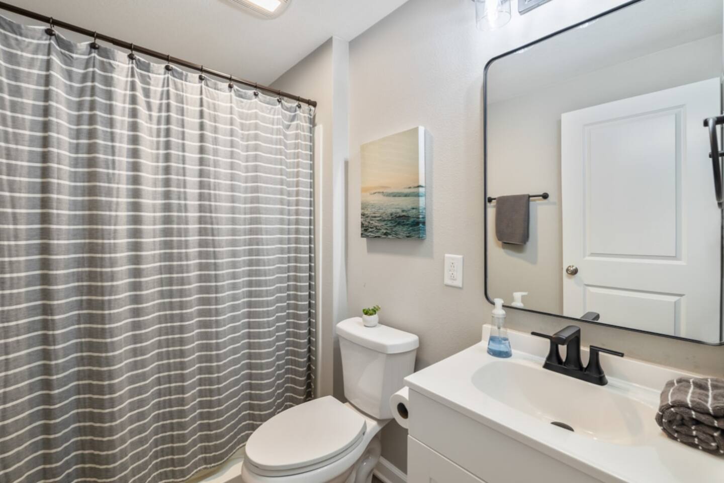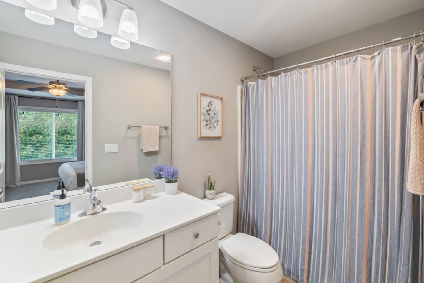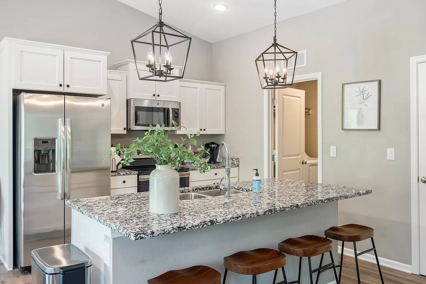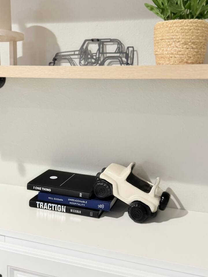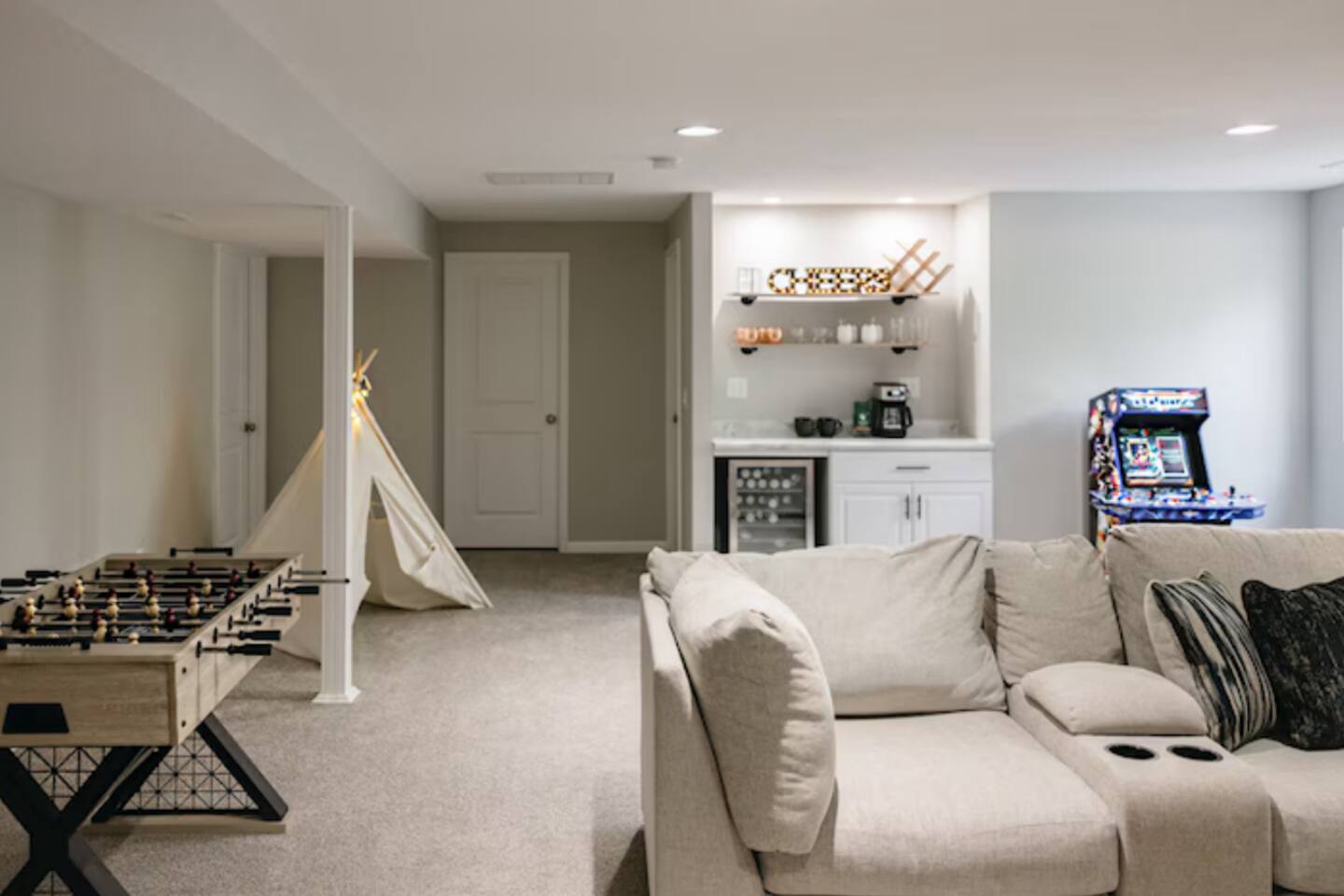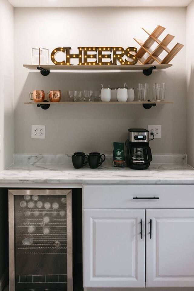 Quick note before we get into the details! From November through January, the home includes seasonal holiday decor, including a Christmas tree and cozy winter touches to make the space feel festive and welcoming. If you’d prefer the decor be removed before your stay, just let us know and we’ll be happy to accommodate. What You’ll Love: • Keyless entry for easy check-in • Fully stocked kitchen with complimentary coffee & snacks • 6-person hot tub overlooking a private tree-lined backyard • Huge basement game loft with foosball, arcade games, and more • Cozy fire pit area with string lights and outdoor sectional • Fast Wi-Fi, Roku Smart TVs, and workspace options • Family-friendly touches like a high chair, pack & play, and kid-friendly dinnerware The open-concept main floor makes it easy for your group to cook, relax, and hang out together, while the split-level layout offers added privacy for those who want a little quiet time. Main Level Highlights: • Spacious living room with a 65” Smart TV, and plenty of games • Chef-ready kitchen with island seating, gadgets, soft-close cabinets, stainless appliances and dishwasher + Keurig and pour-over options • 3 bedrooms (1 king, 2 queens) and 2 full bathrooms. The king bedroom features a 65” Smart TV, and one of the upstairs queen bedrooms includes a 55” Smart TV. • Laundry room and mudroom just off the kitchen • Walk-in shower in the primary suite + hallway bath with tub/shower combo • Design details such as our colorful photo wall, blackout curtains, and thoughtful touches throughout Lower Level Game Loft: Step into your own entertainment zone featuring: • Foosball, NFL arcade game, Roll & Score, fireplace • Third 65” Smart TV with live and streaming access • Mini bar with a drip coffee setup and barware • 4th bedroom with queen bed + extra air mattress • Full bathroom with walk-in shower and hotel-style amenities Outdoor Features: The outdoor space is intimate but thoughtfully designed, blending a comfortable deck with a charming yard area ideal for soaking, relaxing, dining, or enjoying the evening breeze. • Relax in the private hot tub facing peaceful trees • Roast marshmallows at the gas fire pit under string lights • Grill out with the gas BBQ or enjoy a drink on the raised deck • Challenge your group to a game of corn hole • Enjoy a calm morning with coffee or unwind after a long day at Adventureland Garage access is not included, though limited use of the two-car garage may be available upon request and is not guaranteed. Parking is available for up to 6 standard-size vehicles, with space for 4 in the driveway and 2 off-street. Location Perks: • 2 miles to Adventureland, Outlets of Des Moines, Prairie Meadows Casino • 10 minutes to Downtown Des Moines, the Casey’s Center, and the Iowa State Fairgrounds • 20 minutes to the Des Moines International Airport and Blank Park Zoo