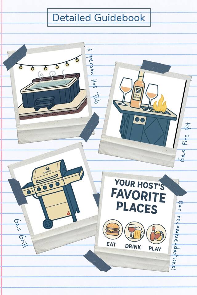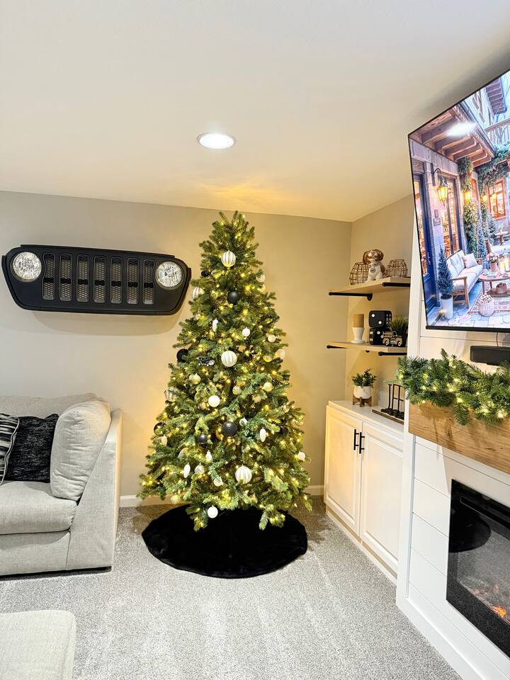 The home comfortably sleeps 10 guests-8 in beds across four bedrooms and 2 on an air mattress stored in the lower-level bedroom closet. All sleeping spaces include quality linens, pillows, and blankets for a restful stay. For safety and cleanliness the hot tub is drained, refilled and balanced between guests. In those cases, it may take the first evening to reach full temperature. Garage access is not generally included, though limited use of the garage may be available upon request but is not guaranteed. Parking is available for up to 6 standard-size vehicles, with space for 4 in the driveway and 2 off-street. Parking in the grass is not allowed Quiet Hours: 10pm-8am From November through January, the home includes seasonal holiday decor, including a Christmas tree and cozy winter touches to make the space feel festive and welcoming. If you’d prefer the decor be removed before your stay, just let us know and we’ll be happy to accommodate.